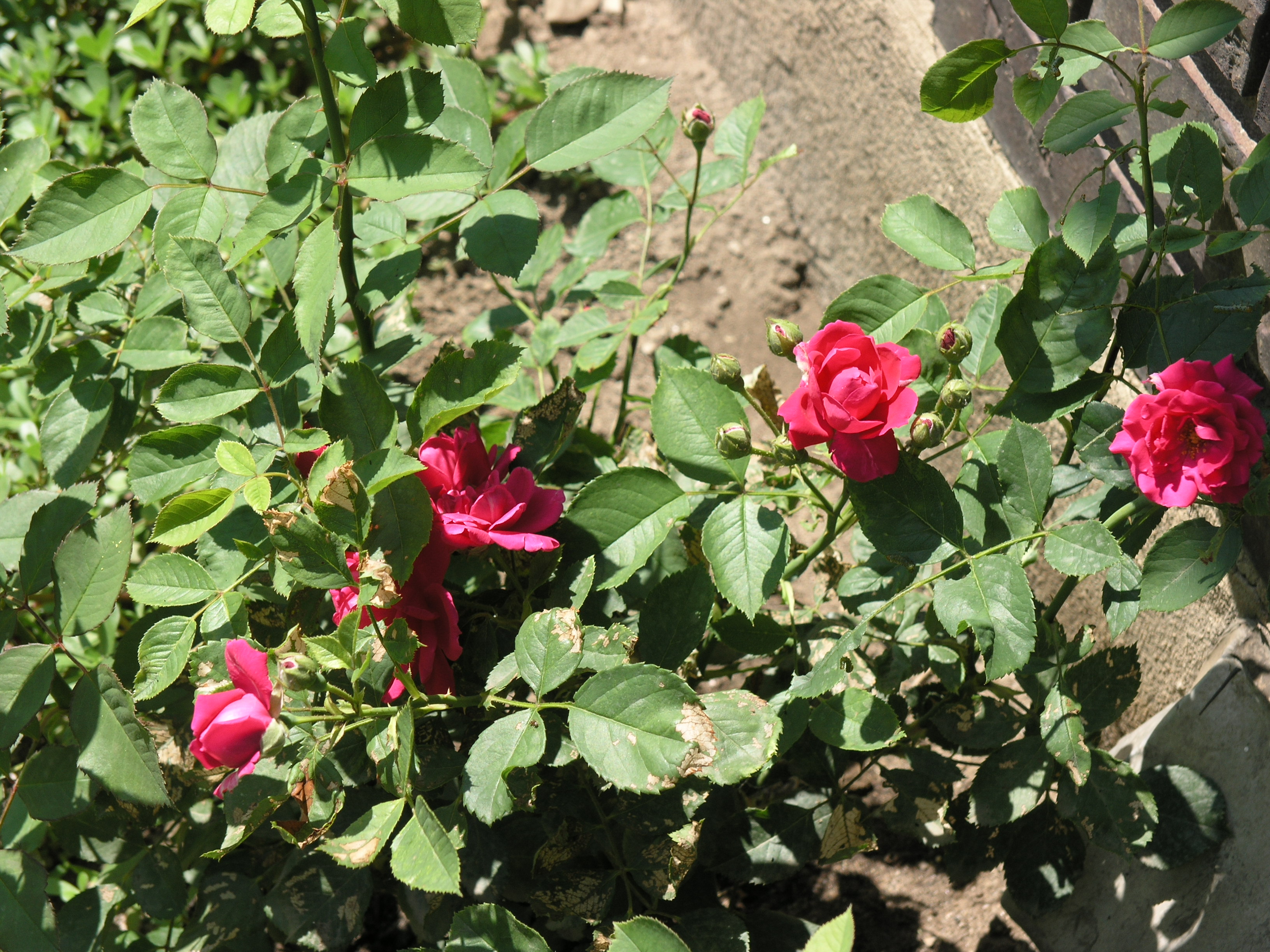 | 廚房窗前,延著磚牆一路迤邐的是艷麗的玫瑰叢。 |  |  |  |  |
