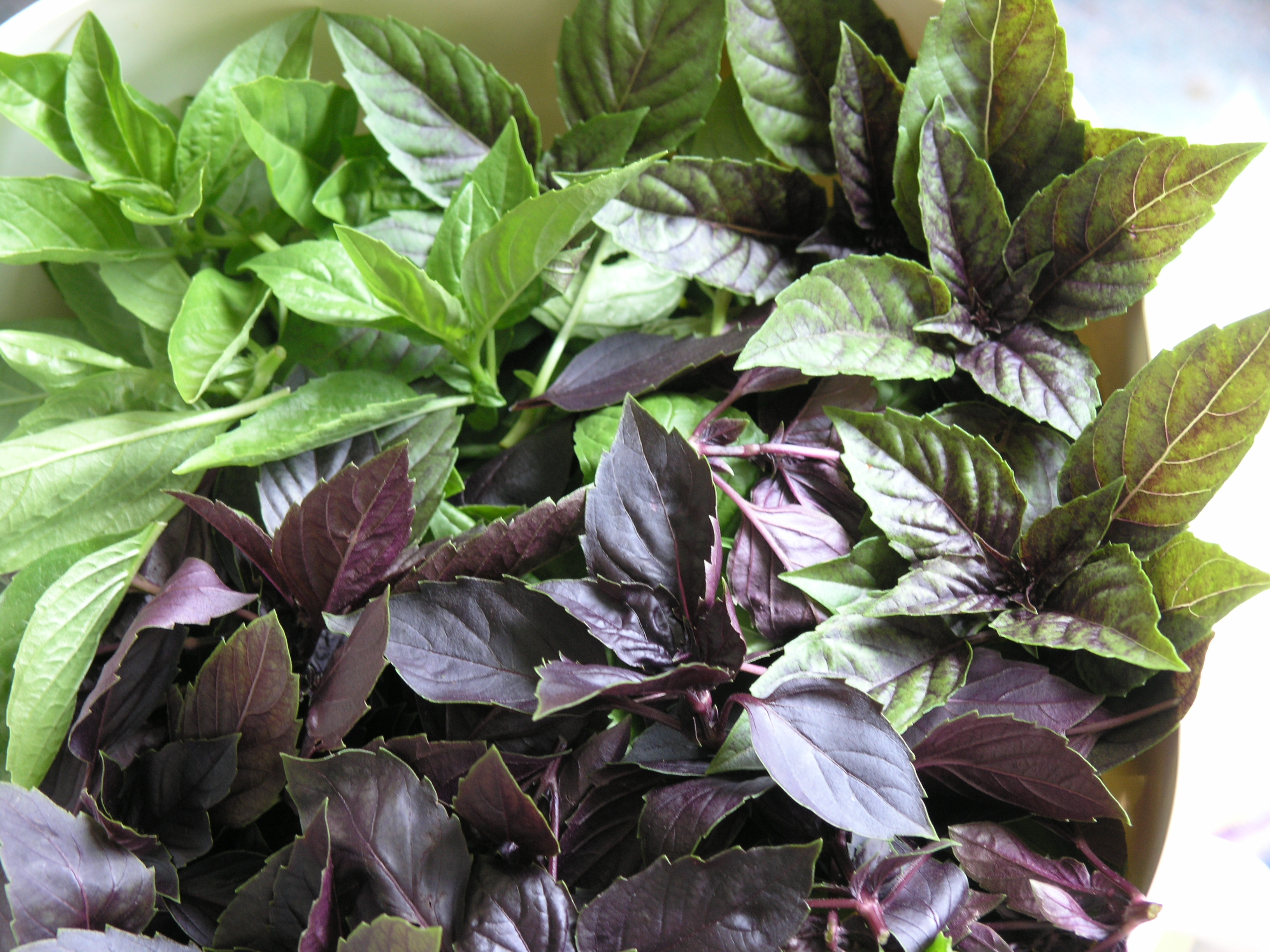 | 花園最大的貢獻莫過於提供了新鮮的有機蔬菜和香辛植物。我們將剛採下的九層塔和紫蘇做成了雙色羅勒松子醬。 |  |  |  |  |