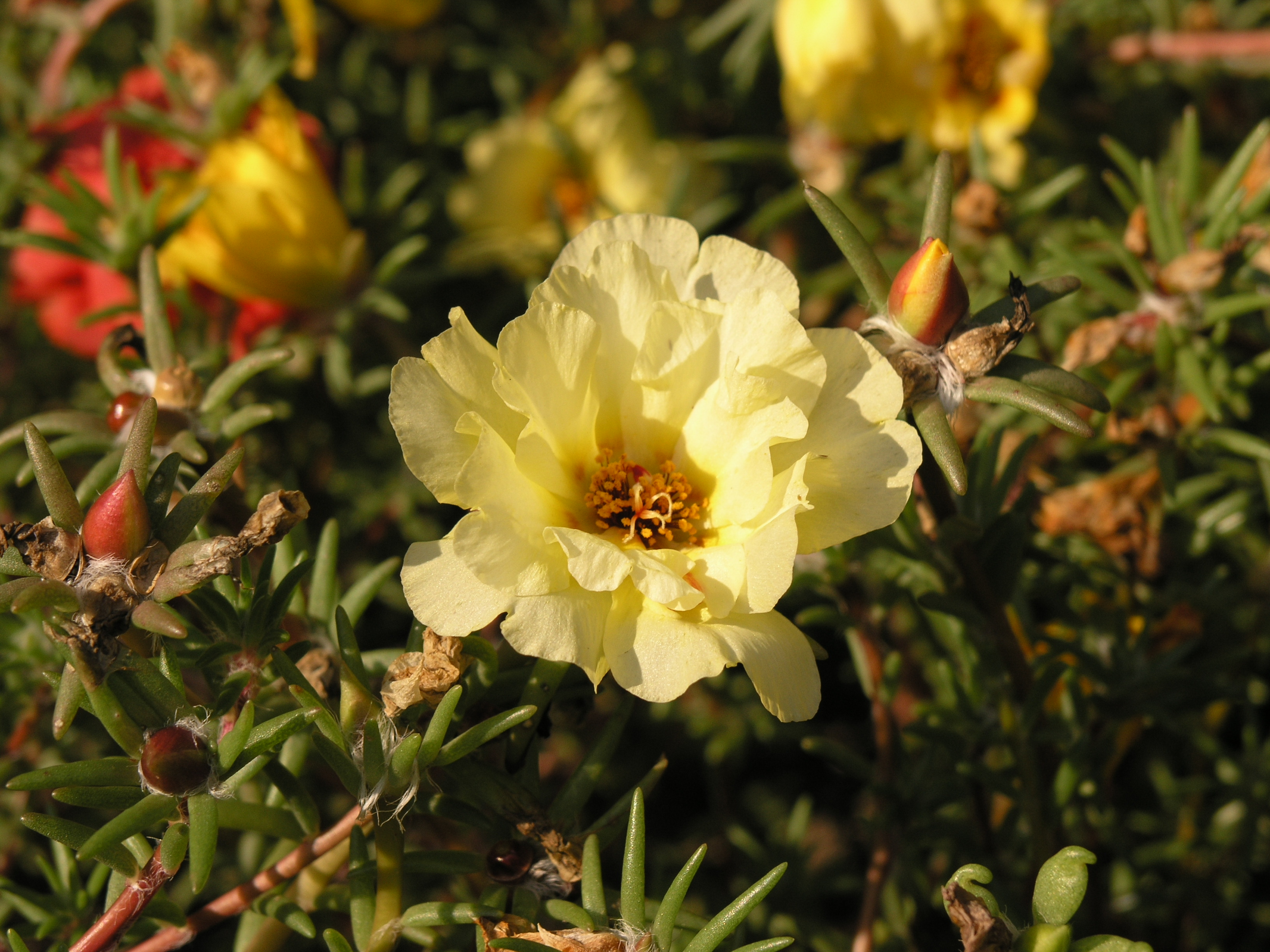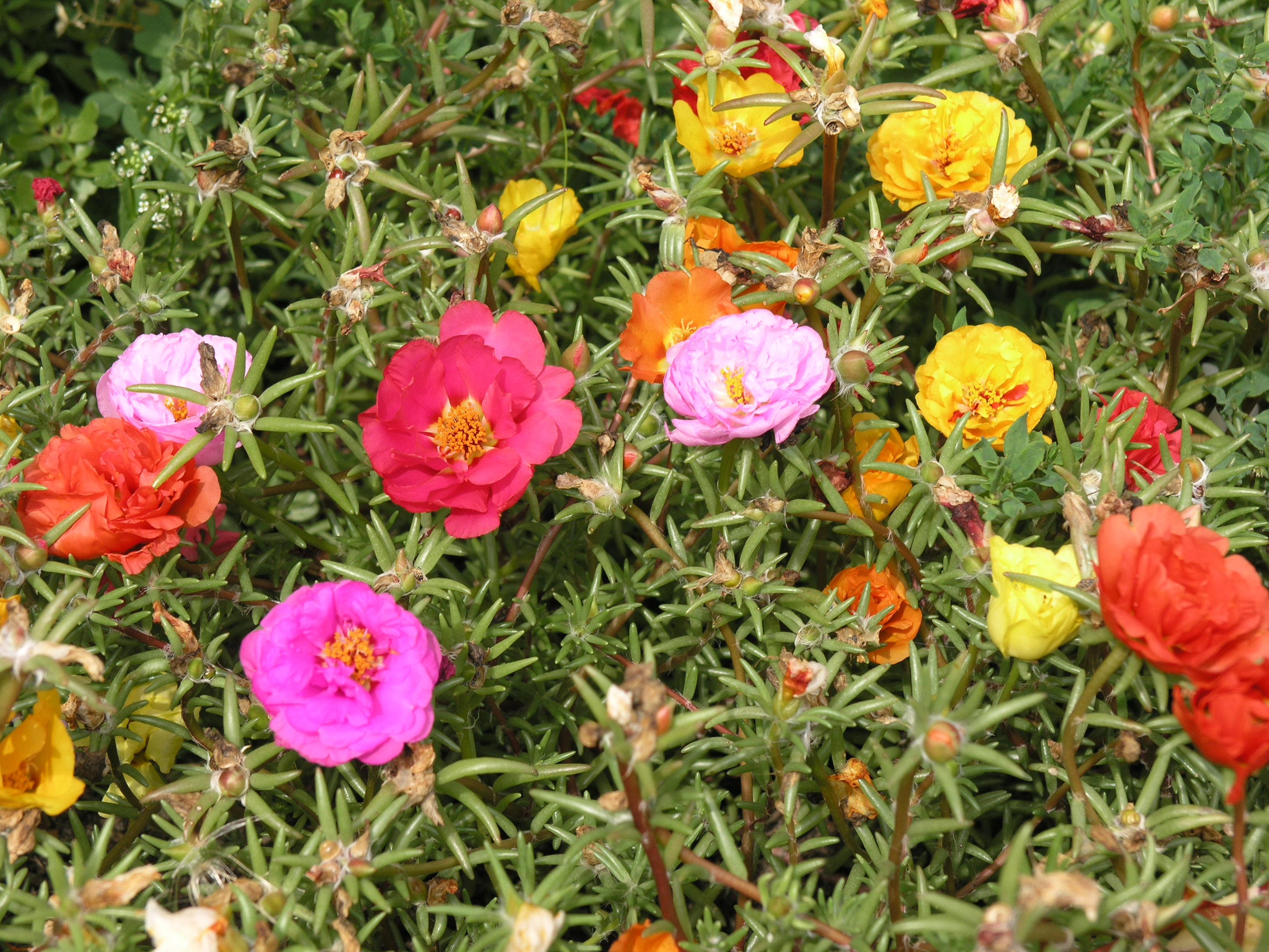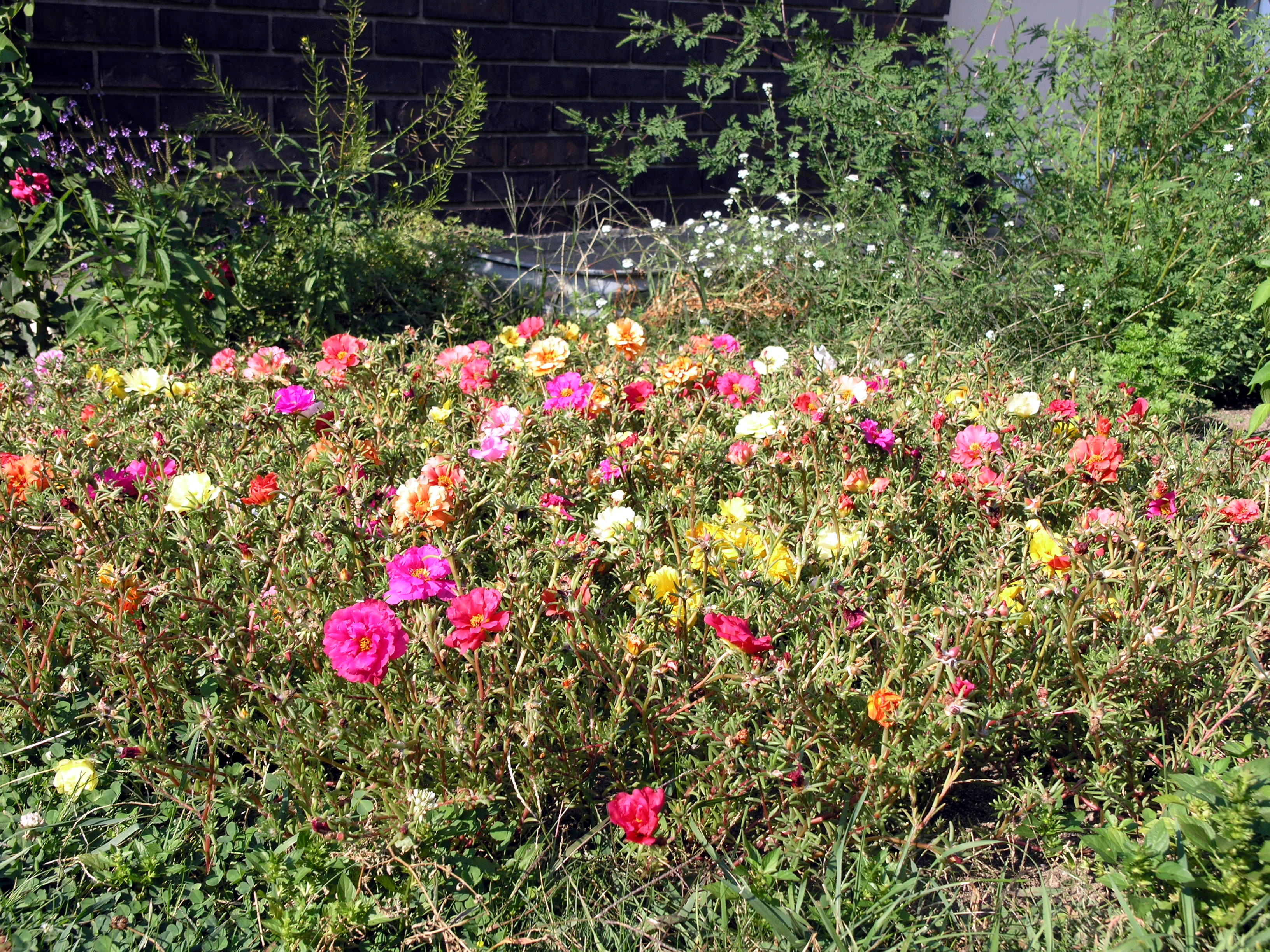 | 說也奇怪,自從種下松葉牡丹後,花的顏色就不斷自行混種。原本單色的花瓣出現了深色的斑點,有的是均勻分佈,有的則呈放射狀。 |  |  |  |